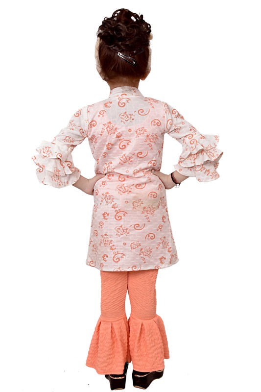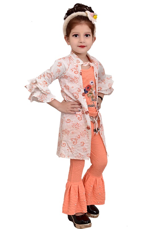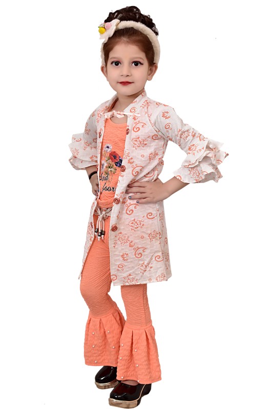 Girl's Cotton Blend Shurg With Top & Bottom Set Pack Of 1 ( Orange )