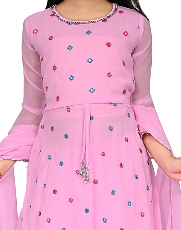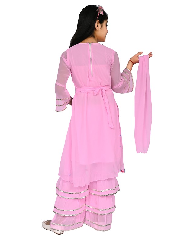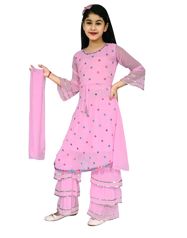 Girl's Georgette Mirror Work Kurtis And Palazzo Set Pack Of 1 ( Pink )