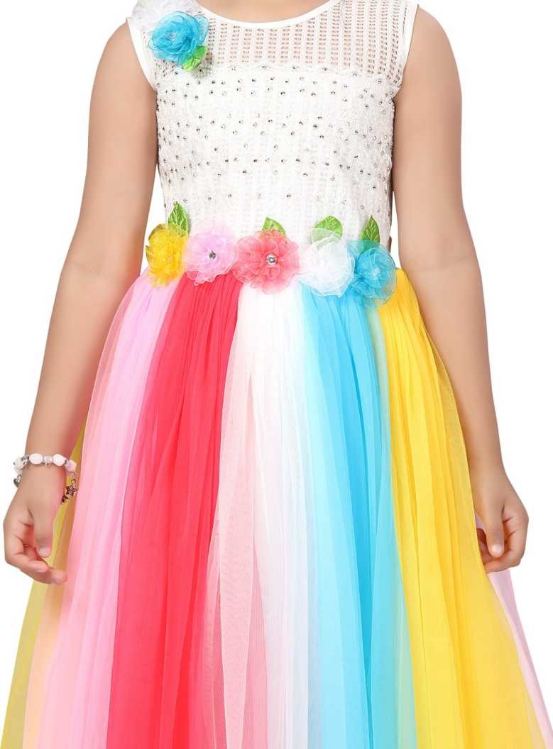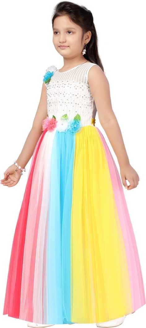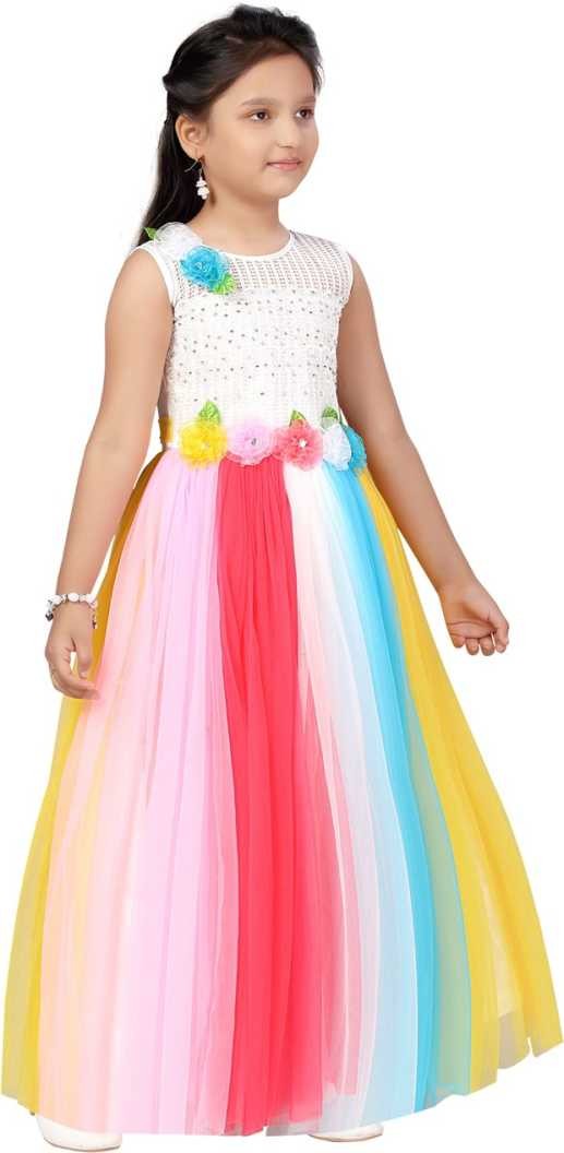 Girl's Multicolor Front Floral Design Long Maxi Gown Dress Pack Of 1