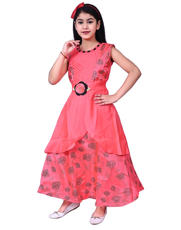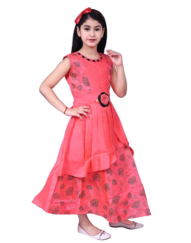 Girl's Printed Long Maxi Gown Dress Pack Of 1 ( Gajri )