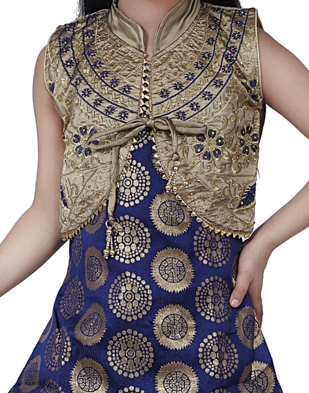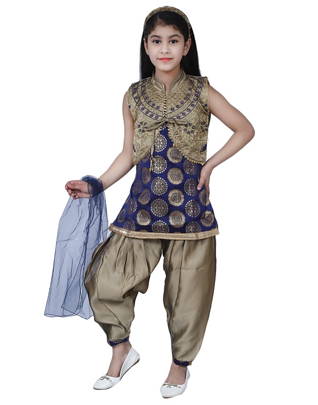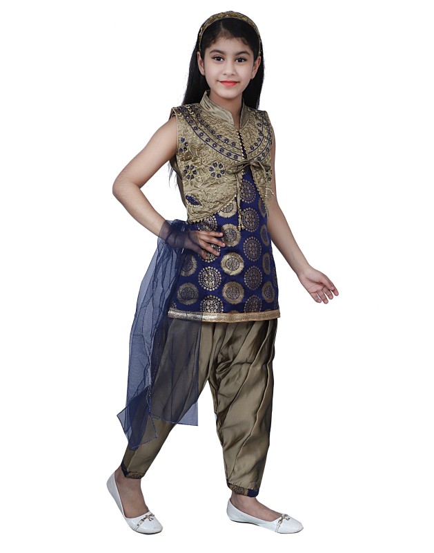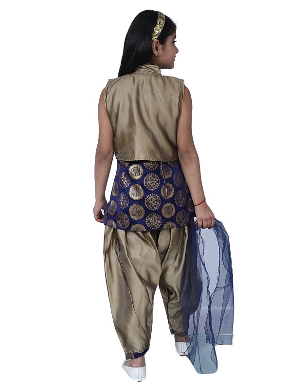 Girl's Silk Blend Sleeveless Kurtis & Patiala With Dupatta Set ( Blue )