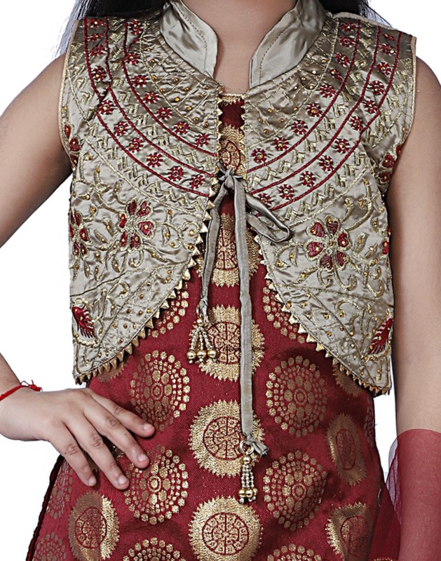 Girl's Silk Blend Sleeveless Kurtis & Patiala With Dupatta Set ( Red )