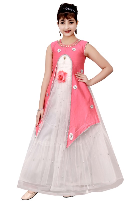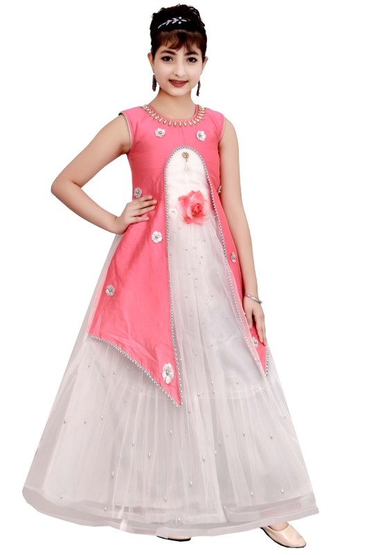 Girl's Sleeveless Long Maxi Soft Net Gown Dress Pack Of 1 ( Pink )