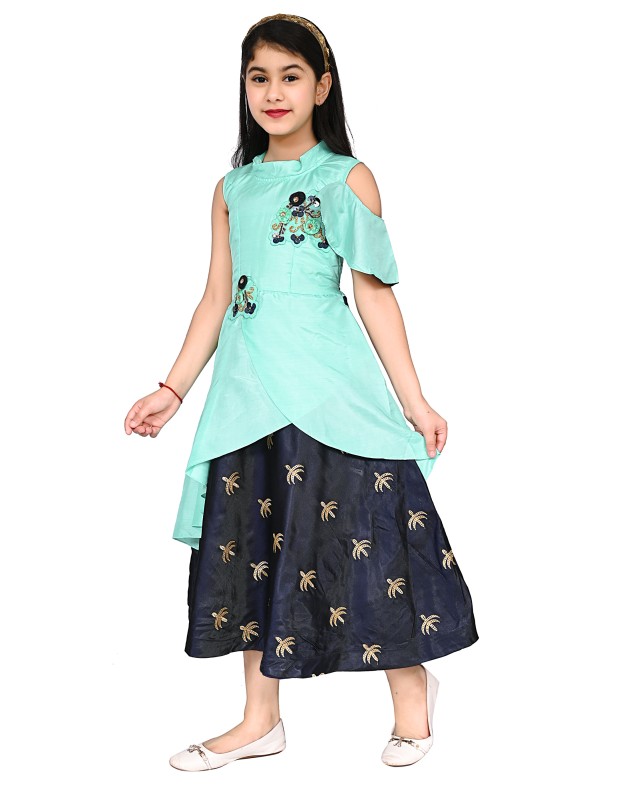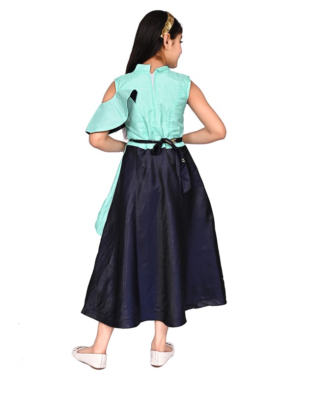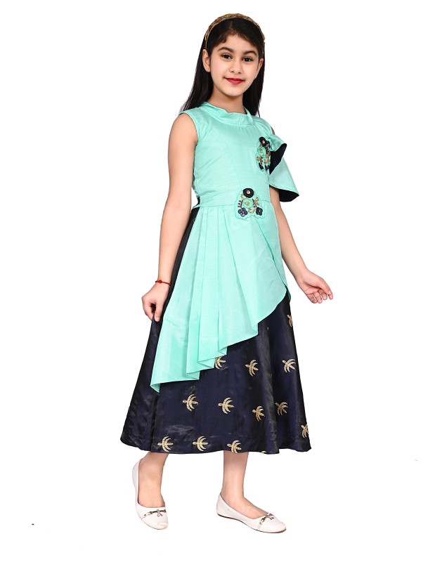 Girl's Sleeveless Maxi/Full Length Party Dress Pack Of 1 ( Light Blue )