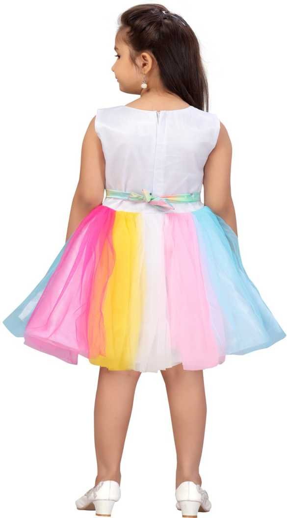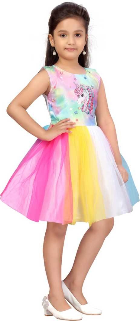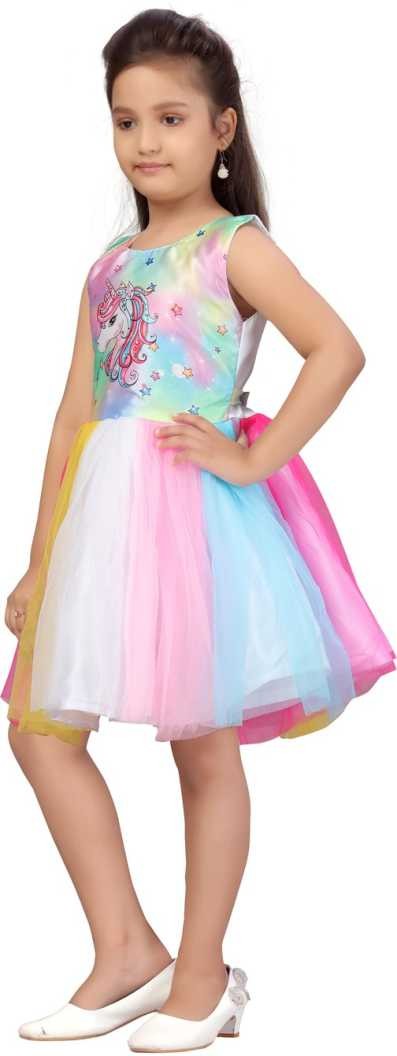 Girl's Unicorn Print Knee Length Soft Net Frocks
